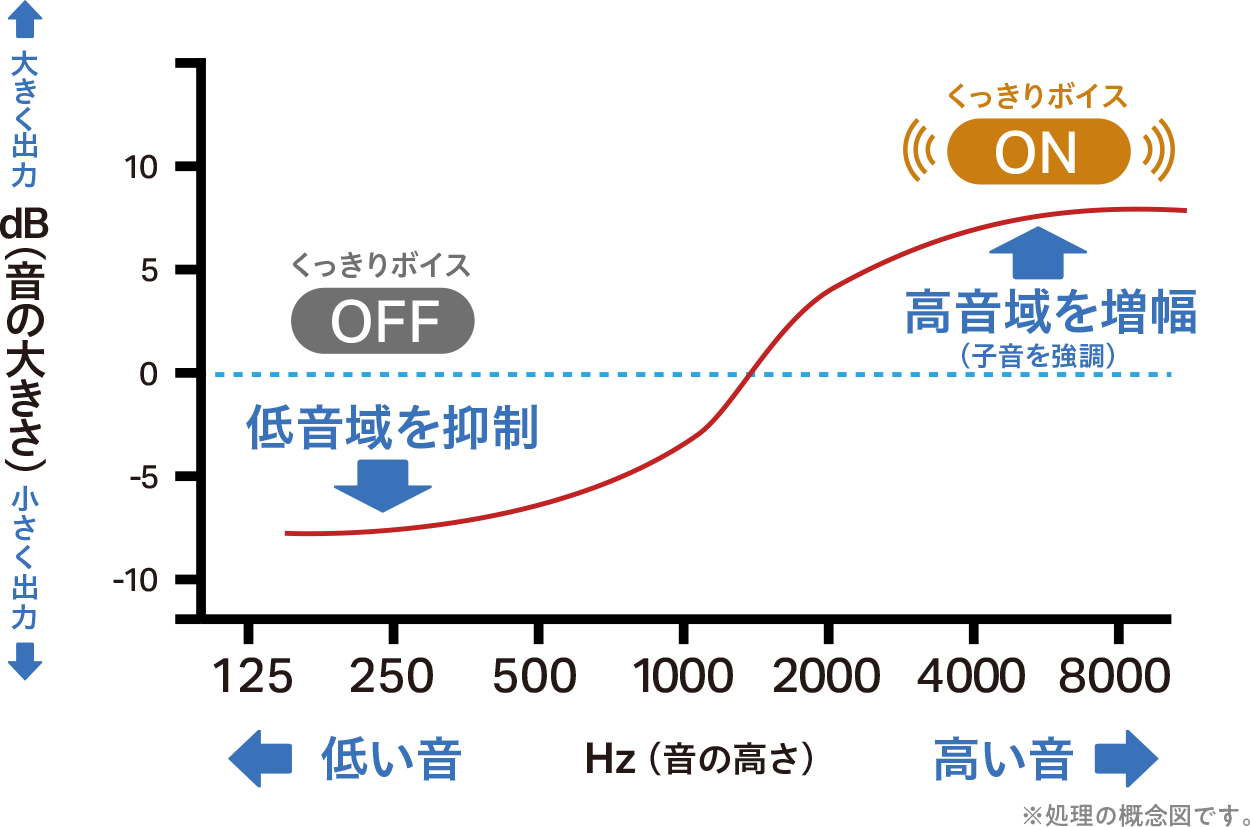 年齢とともに進行する聴こえづらさに対応した、くっきりボイスモード。